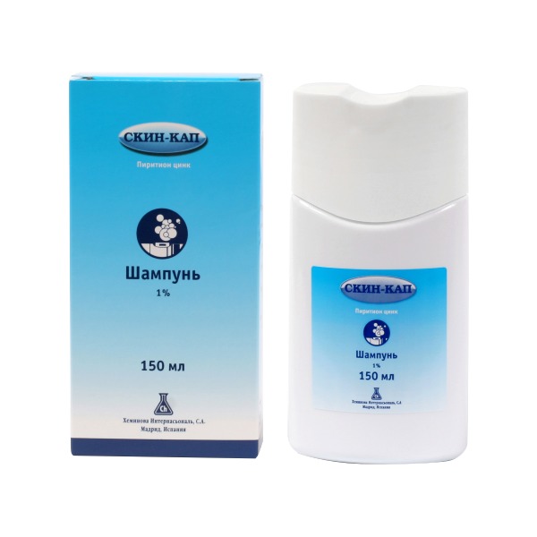 Фармакологические действия:антибактериальное,антибактериальное местное,противогрибковое,противогрибковое местное,противопсориатическое.Состав:цинк пиритион - активное вещество.Не содержит отдушек, красителей и консервантов. .Показания к применению:Проблемная кожа со склонностью к сухости и шелушению, раздражению, покраснению.Уход за кожей головы.Способ применения и дозы:Наружно.Перед применением интенсивно встряхнуть флакон.Нанести небольшое количество шампуня «Скин-кап» равномерно распределить по всей пов
