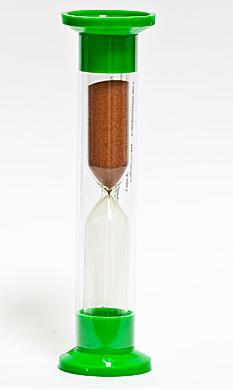 Песочные часы применяются для измерения времени и представляют собой стеклянные колбы с песком на подставках. Подставки часов выполнены из цветного пластика (зеленый, красный, желтый, фиолетовый и т.п.) и поэтому часы отличаются не только по размеру, но и по цвету исполнения. Часы выпускаются на 1, 2, 3, 5, 10,15 и 20 мин. Параметры (интервал ± отклонение): 1 мин ± 4 сек; 2 мин ± 7 сек; 3 мин ± 10 сек; 5 мин ± 15 сек; 10 мин ± 20 сек.